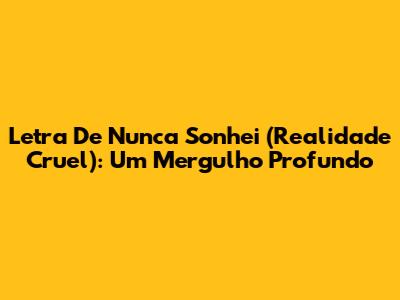 Letra De Nunca Sonhei (Realidade Cruel): Um Mergulho Profundo