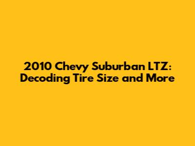 Hey there, gearheads! If you're cruising around in a 2010 Chevy Suburban LTZ, you know you've got a beast of an SUV. A big, comfy, and powerful machine! But, when it comes to keeping your Suburban running smoothly and safely, understanding your tire size is absolutely crucial. Choosing the right tires isn't just about looks; it's about performance, handling, and your overall safety on the road. So, let's dive into everything you need to know about the 2010 Chevy Suburban LTZ tire size, including the specifics, how to read them, and some additional tire-related tips to keep you rolling!