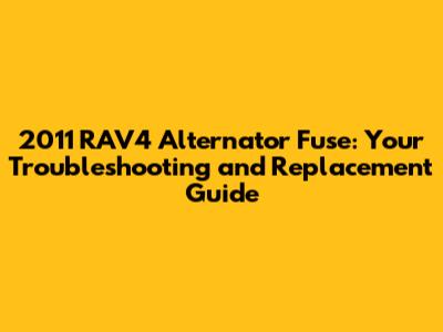 Understanding the 2011 Toyota RAV4 Alternator Fuse