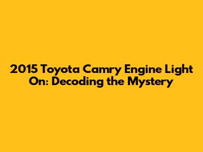 Hey there, car enthusiasts! Ever seen that ominous engine light pop up on your 2015 Toyota Camry's dashboard and felt a wave of worry wash over you? You're definitely not alone. It's a common experience, and usually, it's not the end of the world. But it's also a signal that something's not quite right with your car, and it's essential to figure out what's causing it. Let's dive deep into the potential reasons why your 2015 Camry's engine light might be illuminated, what you can do about it, and how to keep your trusty ride running smoothly. We'll explore various scenarios, from minor issues to more complex problems, providing you with a comprehensive understanding of the situation. This will help you to take proper actions and address the underlying cause of the engine light, ensuring that your Camry continues to perform reliably for years to come. Remember, addressing these issues promptly can save you from more significant and costly repairs down the road, so let's get started and unravel the mystery together, shall we?