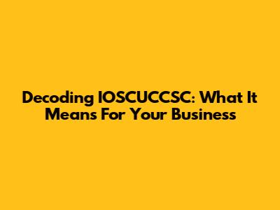 Decoding IOSCUCCSC: What It Means For Your Business
