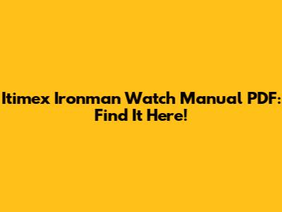 Itimex Ironman Watch Manual PDF: Find It Here!