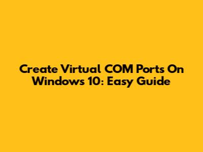 Create Virtual COM Ports On Windows 10: Easy Guide