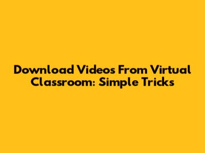 Download Videos From Virtual Classroom: Simple Tricks
