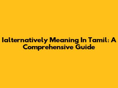 Ialternatively Meaning In Tamil: A Comprehensive Guide