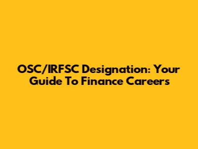OSC/IRFSC Designation: Your Guide To Finance Careers