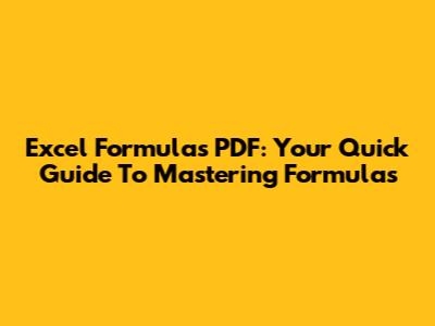 Excel Formulas PDF: Your Quick Guide To Mastering Formulas