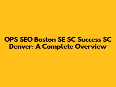 OPS SEO Boston SE SC Success SC Denver: A Complete Overview