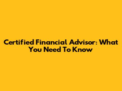 Certified Financial Advisor: What You Need To Know
