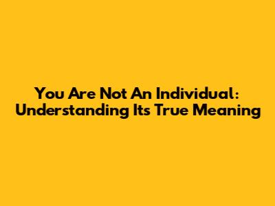 You Are Not An Individual: Understanding Its True Meaning