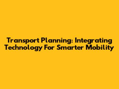 Transport Planning: Integrating Technology For Smarter Mobility