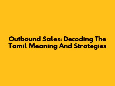 Outbound Sales: Decoding The Tamil Meaning And Strategies