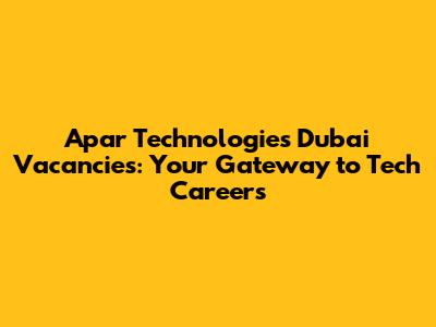 Hey there, future tech stars! Are you on the hunt for exciting opportunities in the dynamic world of technology? Look no further! This article is your ultimate guide to navigating the Apar Technologies Dubai vacancies landscape. We'll dive deep into what makes Apar Technologies a fantastic place to work, explore the types of roles they offer, and give you insider tips on how to land your dream job. Get ready to level up your career!
