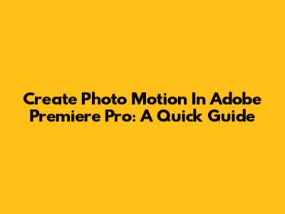 Create Photo Motion In Adobe Premiere Pro: A Quick Guide