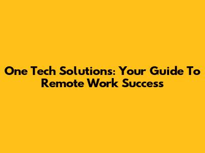 One Tech Solutions: Your Guide To Remote Work Success