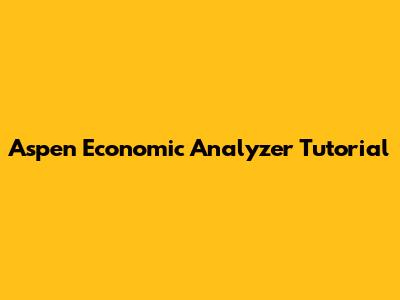 Introduction to Aspen Economic Analyzer