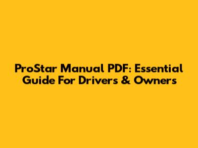ProStar Manual PDF: Essential Guide For Drivers & Owners