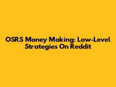 OSRS Money Making: Low-Level Strategies On Reddit