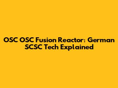 OSC OSC Fusion Reactor: German SCSC Tech Explained