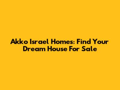 Akko Israel Homes: Find Your Dream House For Sale