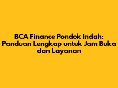 Jam Buka BCA Finance Pondok Indah: