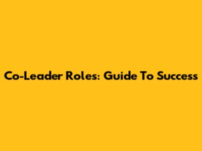 Co-Leader Roles: Guide To Success