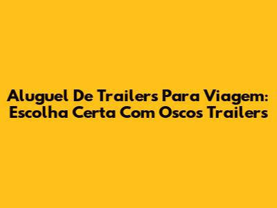 Aluguel De Trailers Para Viagem: Escolha Certa Com Oscos Trailers