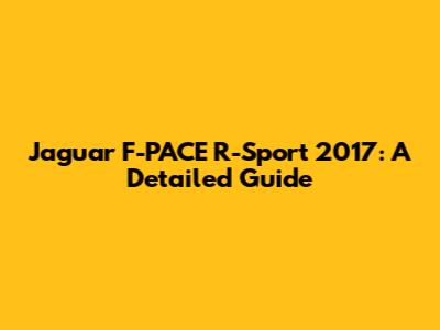 Jaguar F-PACE R-Sport 2017: A Detailed Guide
