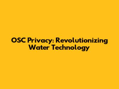 OSC Privacy: Revolutionizing Water Technology