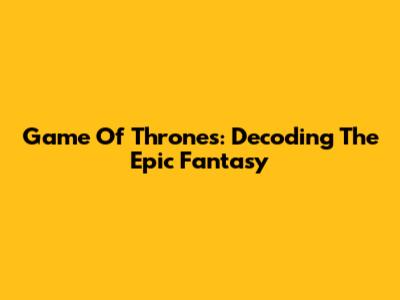 Game Of Thrones: Decoding The Epic Fantasy