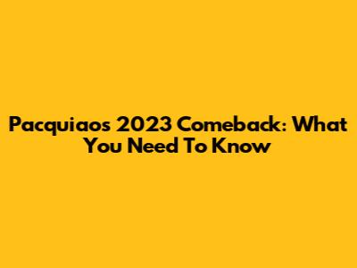 Pacquiao's 2023 Comeback: What You Need To Know