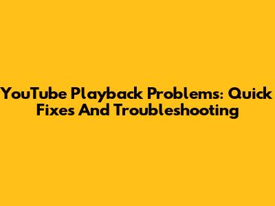 YouTube Playback Problems: Quick Fixes And Troubleshooting