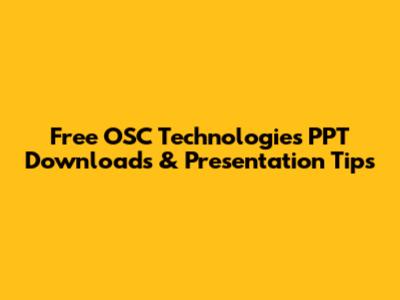 Free OSC Technologies PPT Downloads & Presentation Tips