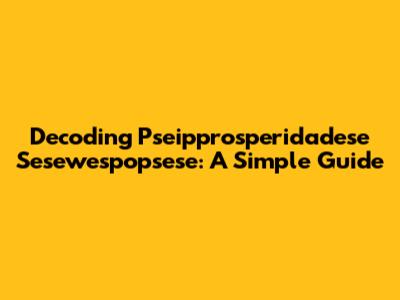 Decoding Pseipprosperidadese Sesewespopsese: A Simple Guide