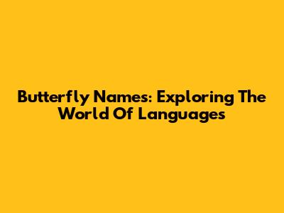 Butterfly Names: Exploring The World Of Languages