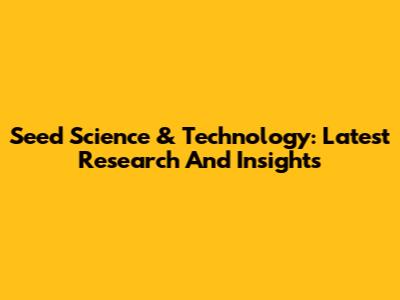 Seed Science & Technology: Latest Research And Insights