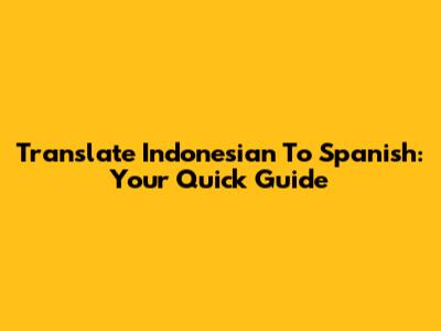 Translate Indonesian To Spanish: Your Quick Guide
