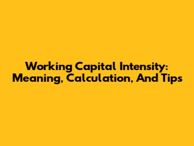 Working Capital Intensity: Meaning, Calculation, And Tips