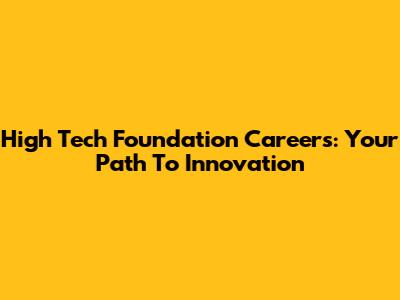 High Tech Foundation Careers: Your Path To Innovation