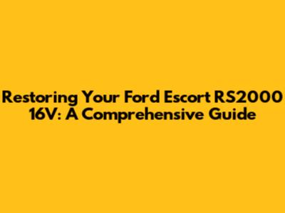 Restoring Your Ford Escort RS2000 16V: A Comprehensive Guide
