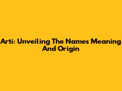 Arti: Unveiling The Name's Meaning And Origin