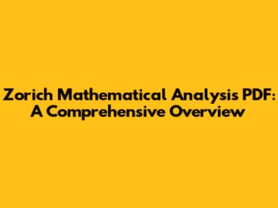 Zorich Mathematical Analysis PDF: A Comprehensive Overview