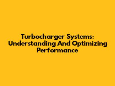Turbocharger Systems: Understanding And Optimizing Performance