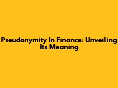 Pseudonymity In Finance: Unveiling Its Meaning