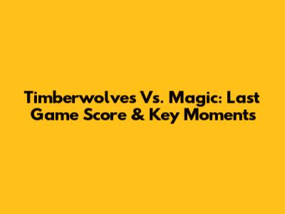 Timberwolves Vs. Magic: Last Game Score & Key Moments
