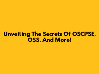 Unveiling The Secrets Of OSCPSE, OSS, And More!