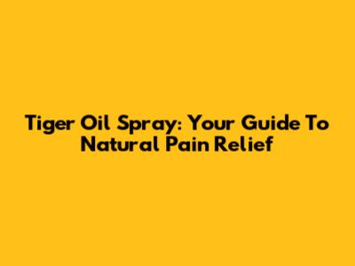 Tiger Oil Spray: Your Guide To Natural Pain Relief