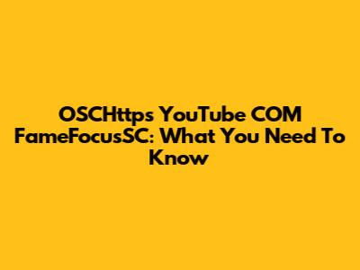 OSCHttps YouTube COM FameFocusSC: What You Need To Know