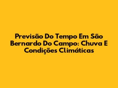 Previsão Do Tempo Em São Bernardo Do Campo: Chuva E Condições Climáticas