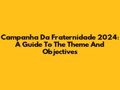 Campanha Da Fraternidade 2024: A Guide To The Theme And Objectives